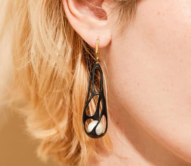 在所有的获奖作品中,J先生最青睐的当属,德国珠宝设计师German Kabirski设计的煤精珍珠耳环。