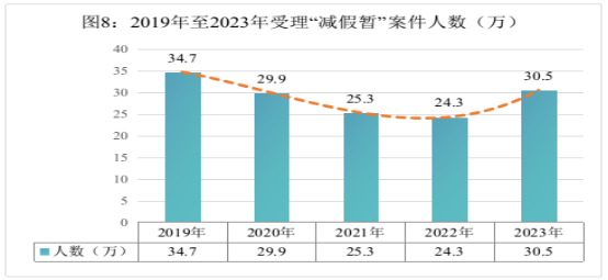 最高检积极推动《关于依法推进假释制度适用的指导意见》《关于进一步规范暂予监外执行工作的意见》落地落实,全国检察机关共受理审查“减假暂”案件304522人,同比上升25.2%。