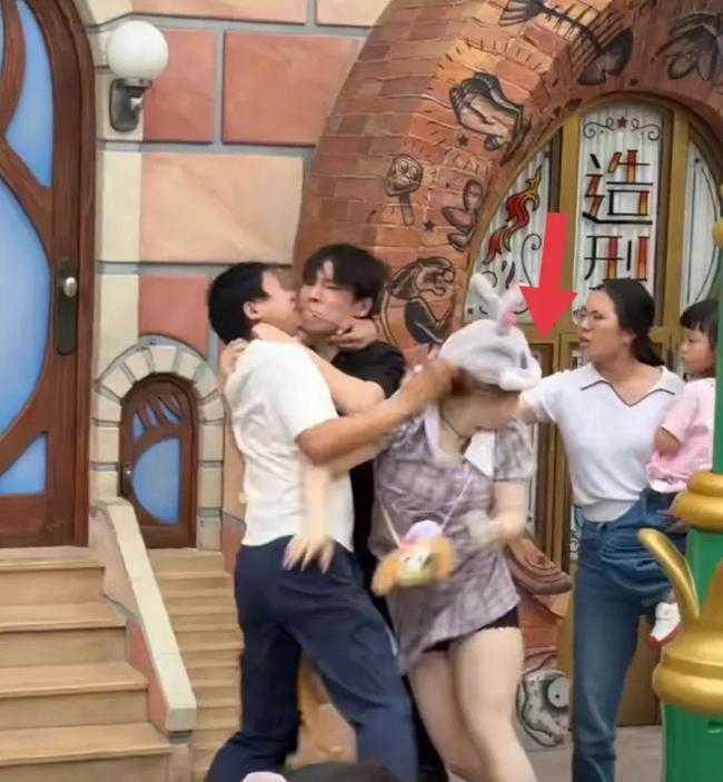 视频里,在疯狂动物城园区,一对情侣和一家三口因拍照打卡竟爆发冲突,还演变成了肢体冲突。