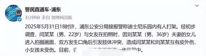 6月1日,当地部门确认,冲突确实发生在5月31日下午,双方是因为拍照打卡的事情起了争执,进而引发了肢体冲突,冲突中有人擦伤、扭伤,好在孩子没受伤,目前具体情况还在进一步调查中。